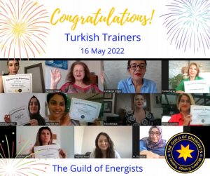 Nagehan Odabaş – Nirvana "I feel I'm in the right place. Thank you everyone"Güler Ilkay Kalkan - Gorgeous Glowing "So happy to be a member of the GoE. Sandra you are amazing and thank you letting me feel gorgeous and glowing" Alperen Emir - Awesome Astonishing "It was a wonderful training, reinforcing all past knowledge. My deepest thanks" Ayşegül Öztürk – Abundantly Alluring "Very amazing, unbelievable, exciting, I'm ready to run. Thank you very much, we love you" Ayşegül Güneş – Amazingly Attractive "Trainers Training was beyond all expectations. Thank you very much. Sending light to all" Esin Buluk – Effervescent Extraordinary "We had a dream-like education and time passed quickly. I am glad to have met you. The path of all of us is light and to be a means for people to reach their most magnificent versions with love" Yasemin Şen – Yummy Youthful "Very regenerating training and I loved the names Sandra gave us all" Neşe Ince – Noble Nice "Thank you Sandra for bring me to +10 in this training. I love it" Meltem Er-posnanski – Marvellous "Thank you Sandra and Cumasiye from my heart. The energy of this training was very high, beautiful, fluent, educational and encouraging. My knowledge is steady. Ready to move forwards." GoE 2024 Trainers Training (Turkey) Wendy Fry, GoE Modern Energy Trainer Ever evolving as an energist this training will take you and your business to the next level. With the added advantage of Modern Stress Management Trainings, Energy Coaching and Energy Healing The Guild of Energists trainings are leading the way in creating energy solutions to combat stress and not only that taking you, your clients, your trainings, your relationships, your personal development and business through the roof. Your future aspect is ready to take this training, don't keep them waiting. Wendry Fry, GoE Trainer